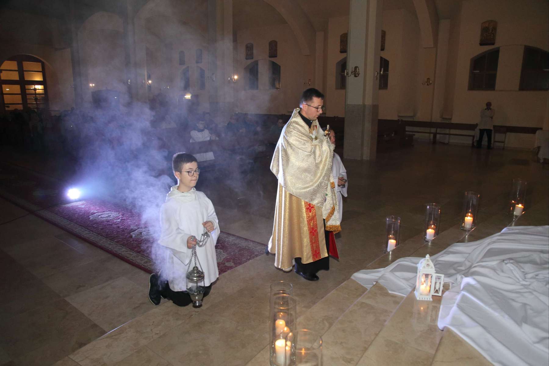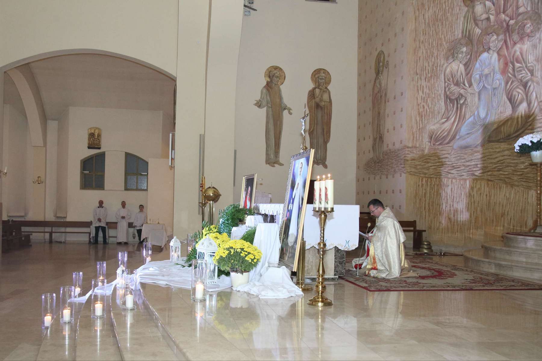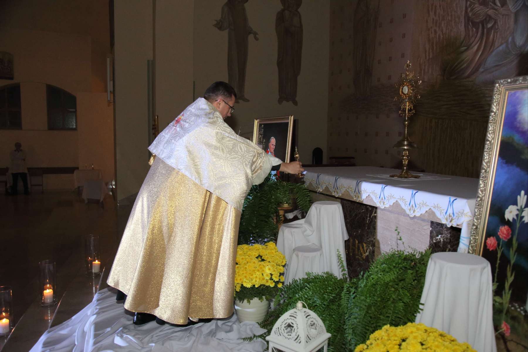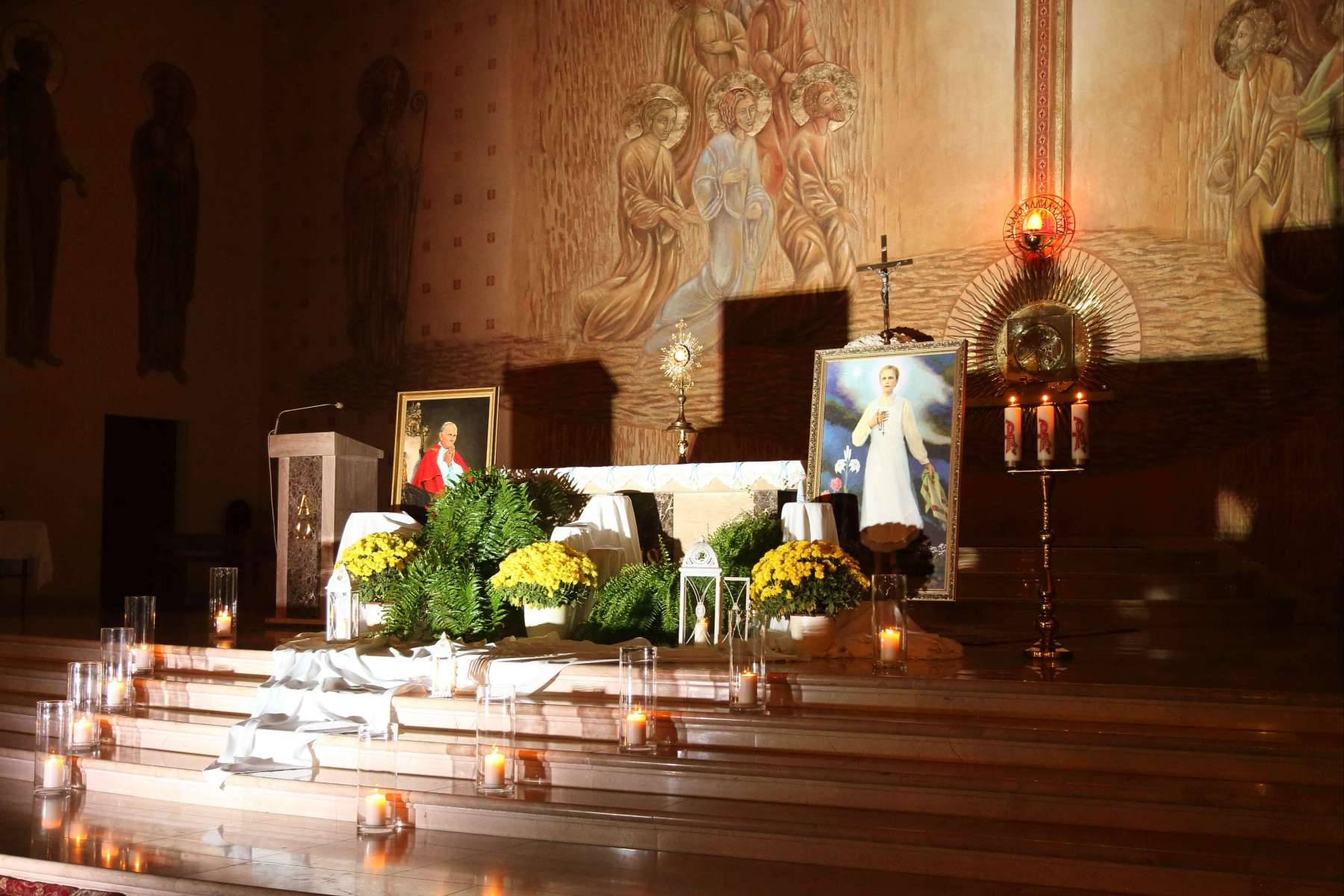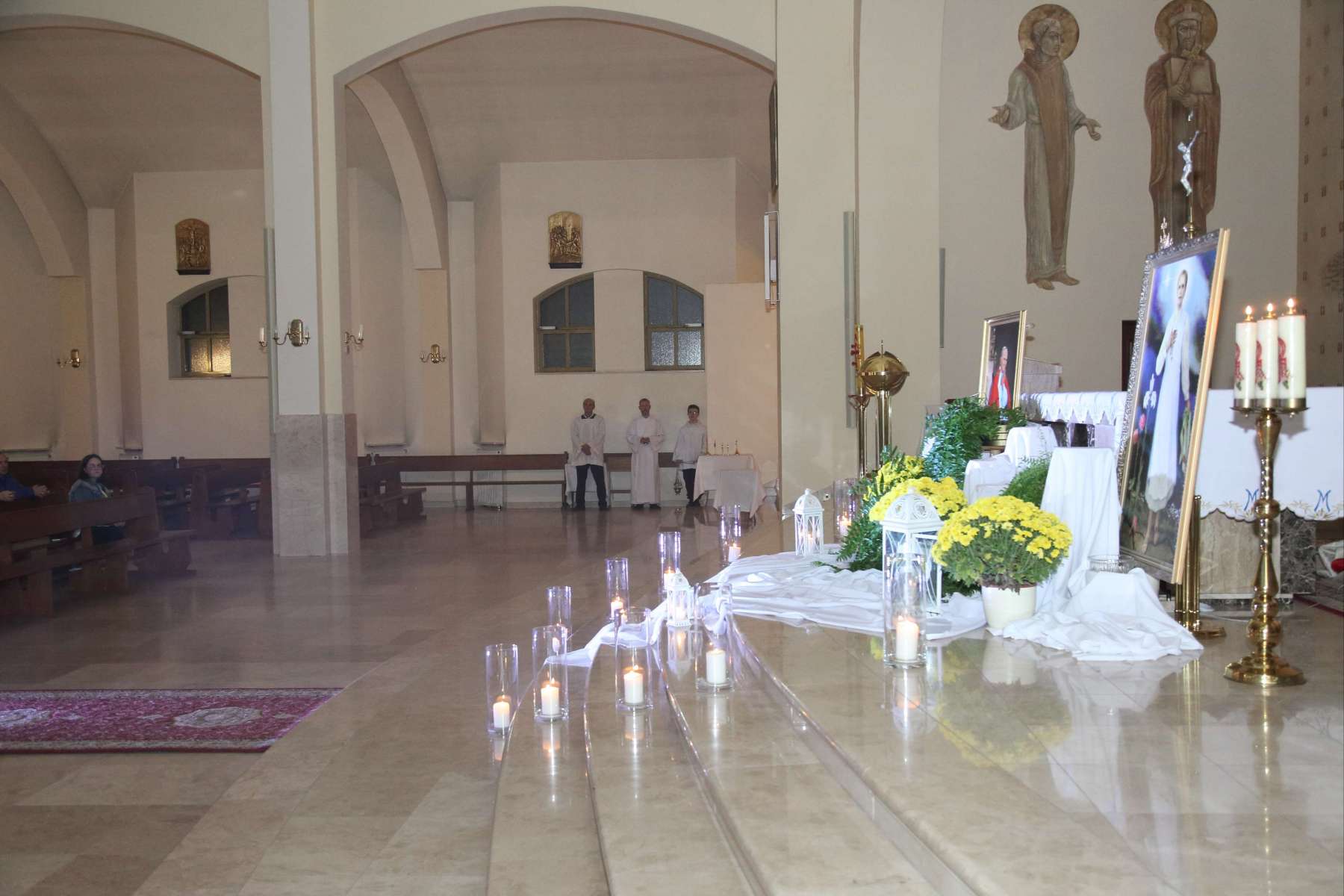 Wczoraj, 31 października o godz. 19:00 w naszej świątyni odbyła się “Noc Świętych”. Było to wydarzenie związane z wigilią uroczystości Wszystkich Świętych i miało na celu przedstawić życiorysy świętych i błogosławionych, których relikwie znajdują się w naszym kościele. Byli to: Św. Jan Paweł II, Św. Siostra Faustyna Kowalska, Bł. Ks. Jerzy Popiełuszko, Bł. Karolina Kózkówna oraz Św. Stanisław Biskup i Męczennik.